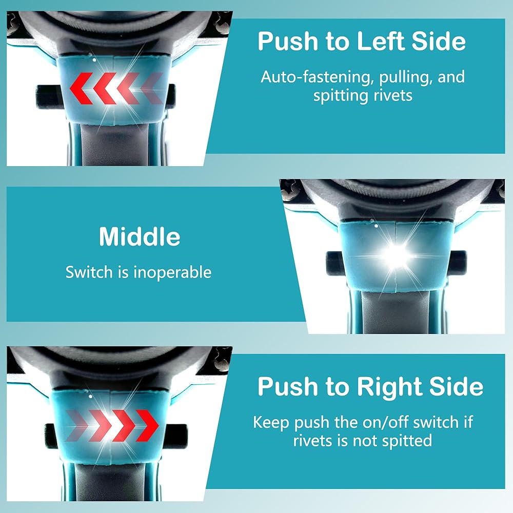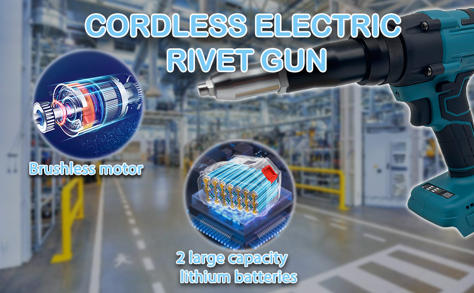 [Brushless Motor for Superior Performance]:Powered by a high-efficiency brushless motor, this cordless rivet gun delivers stronger torque, lower heat, and a longer service life compared to brushed models. Whether you're driving aluminum, steel, or stainless steel rivets, this electric rivet gun ensures smooth and reliable operation with minimal maintenance.