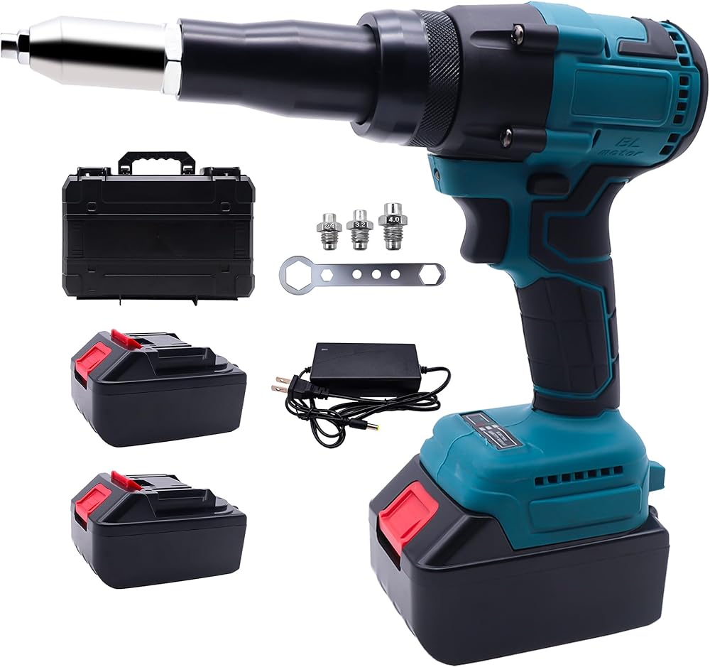 [Cordless & Portable with Carrying Case]:Ditch the air hoses and cords—this cordless riveter gives you full mobility on the job. Its lightweight and compact design lets you work in tight or overhead spaces with ease. The included carrying case keeps the tool, batteries, charger, and accessories neatly organized and ready to go.