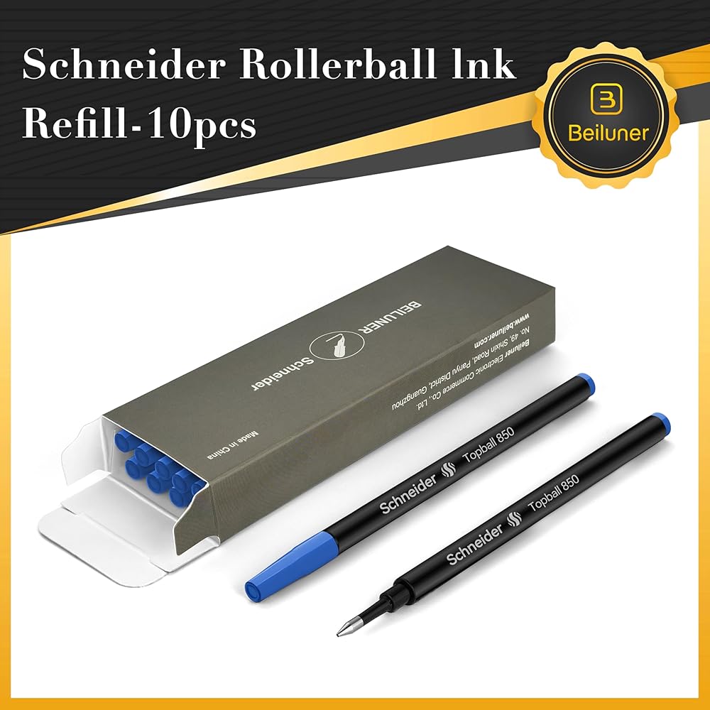 TOP QUALITY:10Pcs Schneider Blue Ink BEILUNER Rollerball Pen Refills.Free-flowing, balanced writing ink with Medium 0.5mm rollerball tip. Quick-drying ink, resists fading, smearing and water, always keep your writing vivid.
