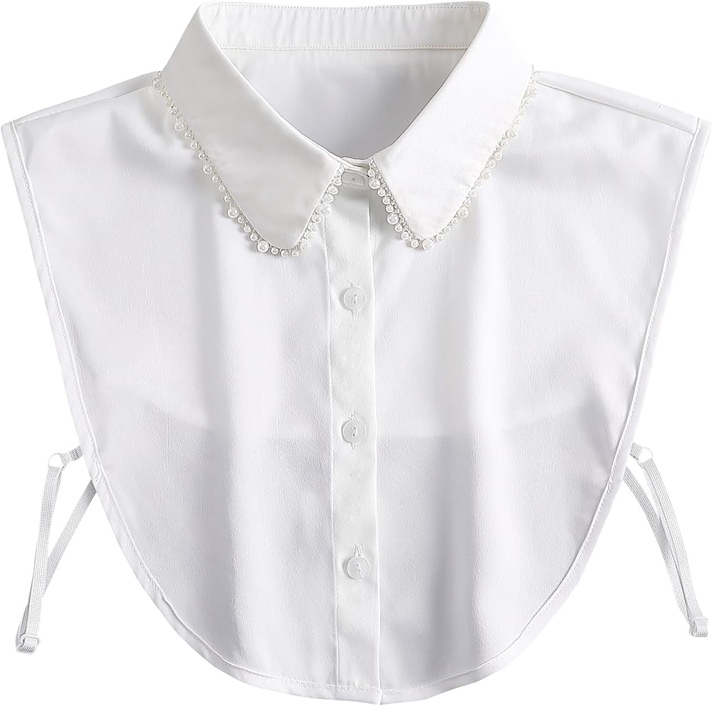 Fake Collar Detachable Blouse Pearl Dickey Collar Chiffon Half Shirts Faux False Collar for Women Girls