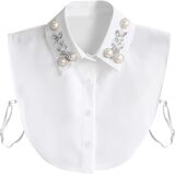 Women fake collar detachable blouse with pearls / beads - elegant design sleeveless shirts for school girls and women to decorate for sweaters, dresses, uniforms, jackets and other casual clothes, make you look formal and stylish