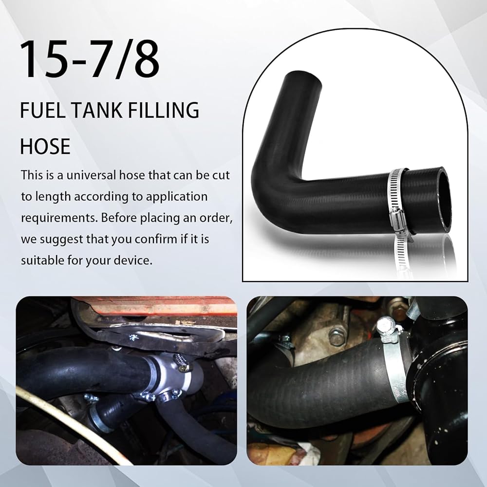 Include 1 fuel tank filler neck hoses with 4 hose clamps made out of stainless steel.Temperature Range: -40 °F to + 212 °F