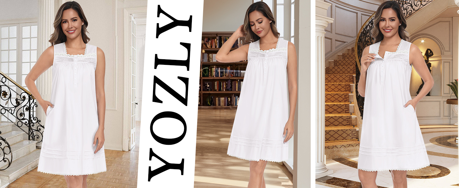 【Two Side Pockets】-Ladies nightgowns feature two side-seam pockets for convenience, you could keep your keys, phone, wallet and more with you whereevery you go. The high-quality cotton allows for the perfect balance of style, comfort, and breathability, it is lightweight and cool.