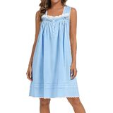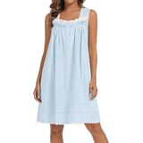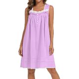【100% Cotton Nightgown 】- This women's nightgown features a sleeveless cut, square neckline, spaghetti straps, and knee-length coverage for modest wear. The fabric is opaque.
