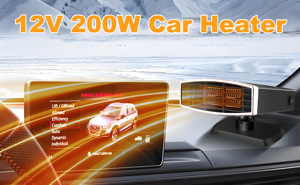 【High Power & Fast Heating】 Our 12v heater fan adopts antioxidant alloy wire, 200W high power rapid heating, effectively removes frost and water mist on the windshield, providing you with a clear view of the road, and at the same time increase the temperature inside the car, so that you can enjoy a safe and warm driving experience in the cold winter