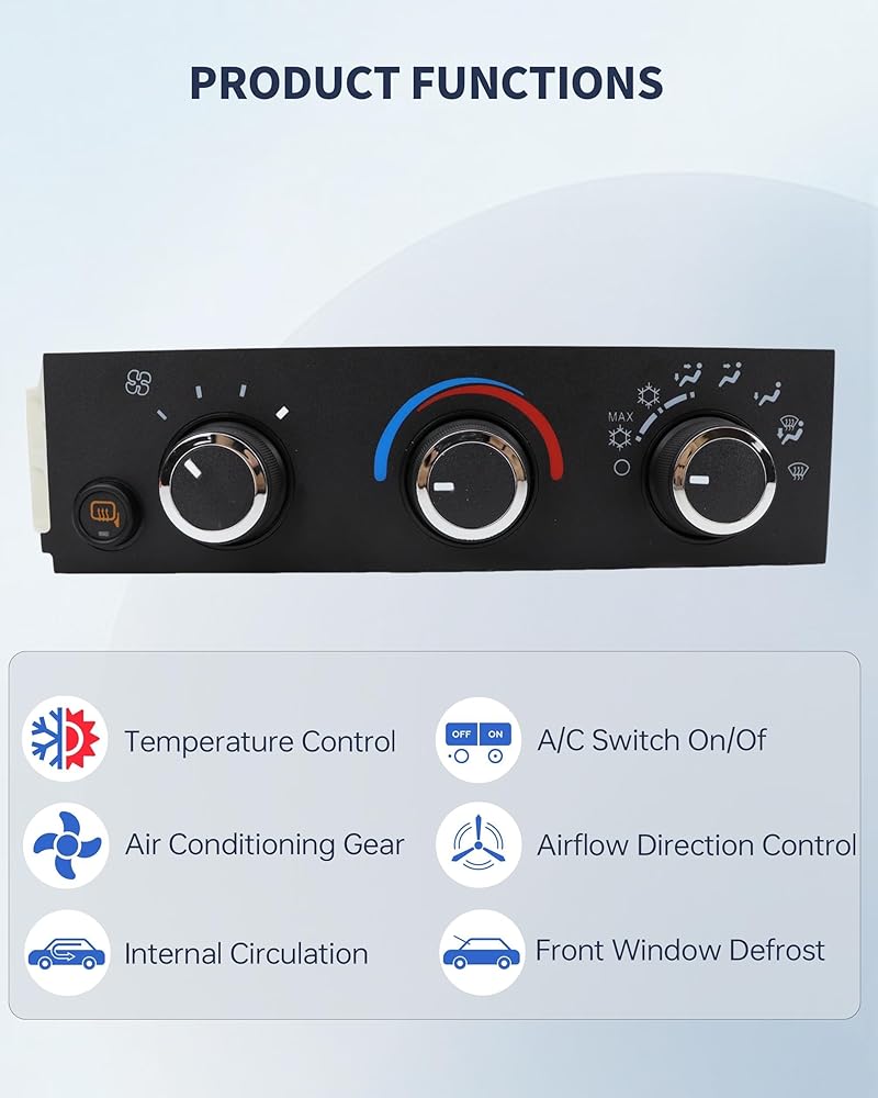 【PRODUCT LISTING】 COMPLETE ASSEMBLY. Package includes one (1) Front Heater & A/C Control Module and one (1) Crowbar. Built with high-grade ABS plastic and improved internal circuitry to resist heat and vibration, ensuring the backlight and buttons last longer than the factory unit.