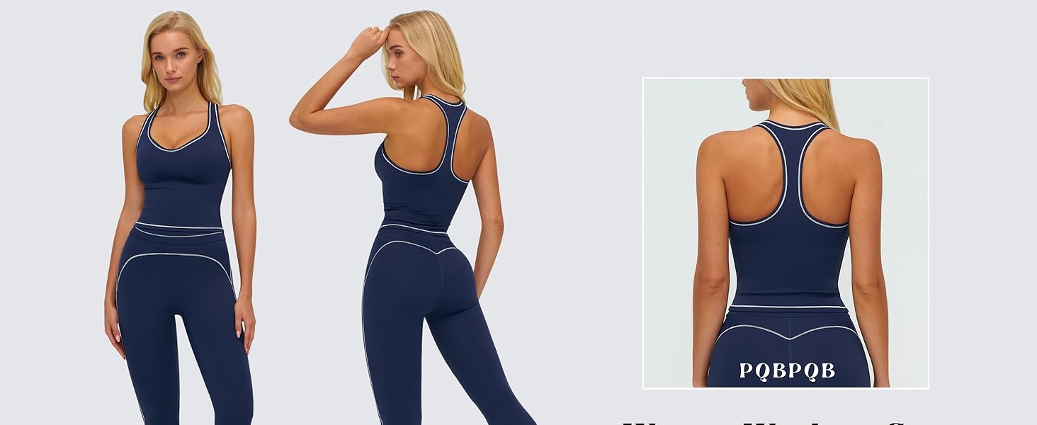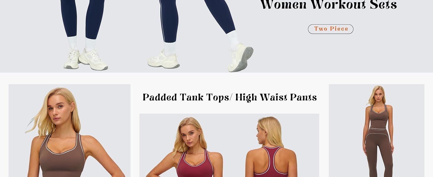 Two Piece Workout Sets for Women: color block womens workout sets is made of 78% Polyamide + 22% Elastane, breathable, moisture wicking, buttery soft, four way stretchy, two piece athletic outfits for women workout crop Tank tops, butt lifting athletic leggings, color block 2 piece workout sets for women, workout sets for women, matching workout sets for women, yoga sets for women, giving comfortable stretch and freedom of movement,