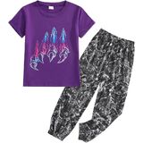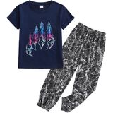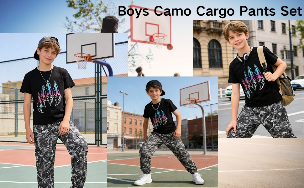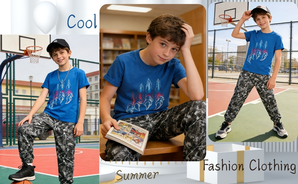 Design:The boy's top features a round-neck design with printed patterns,Pants are used in popular camouflage printed, tightened pants feet,convenient and fashionable.