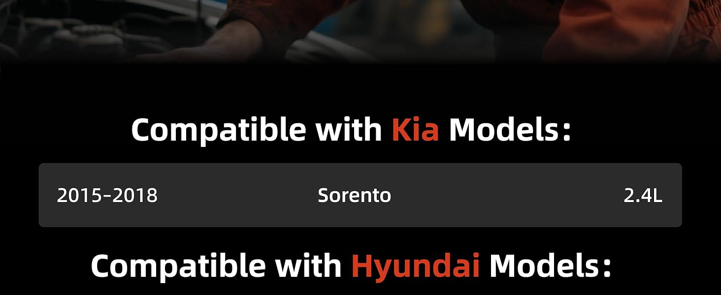 【Vehicle Fitment】Compatible with Hyundai Sonata 2.4L 2015–2017, Santa Fe Sport 2.4L 2016–2018, Tucson 2.4L 2015–2019; Compatible with Kia Sorento 2.4L 2015–2018.