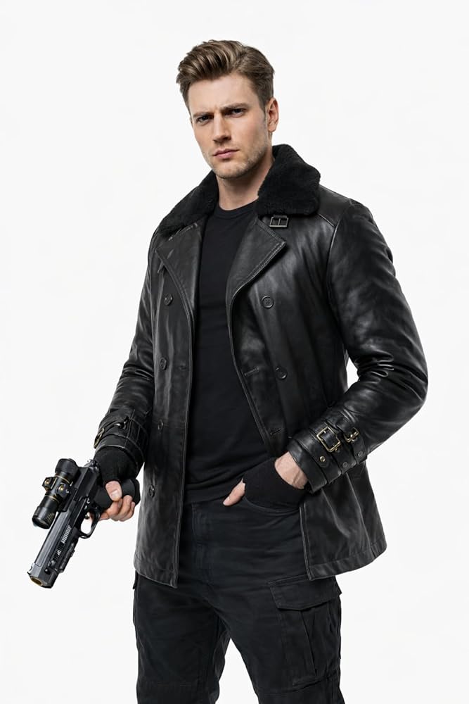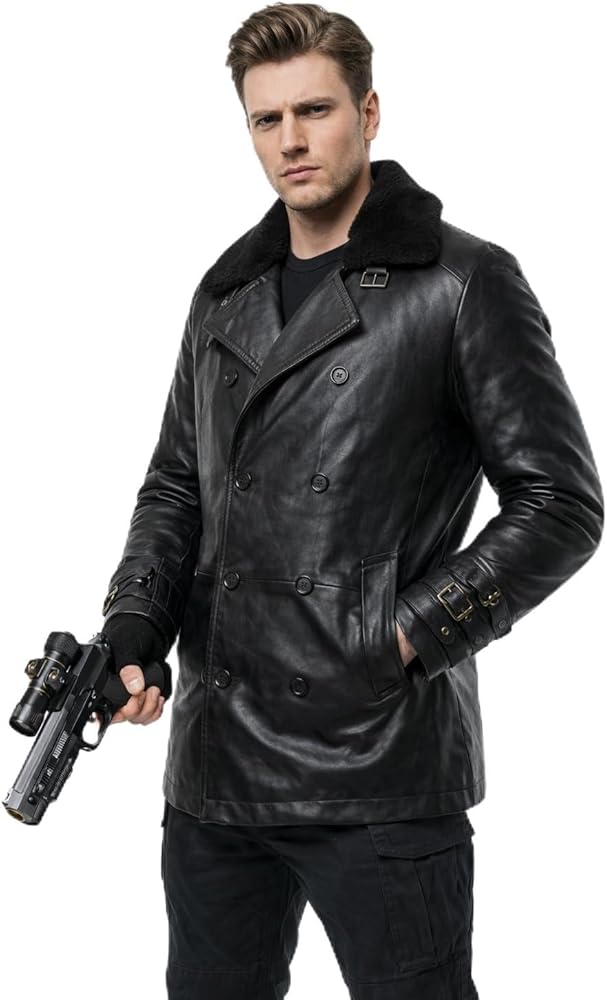 Inspired by Leon Kennedy's iconic RE9 outfit, this RE9 Leon Kennedy leather coat delivers a bold, tactical look for fans of video game fashion and premium outerwear. This men's black leather trench coat features a double breasted button closure, a soft fur collar, and a long silhouette that closely matches the Leon Kennedy leather coat style from RE9. Crafted from high-quality black leather, this RE9 leather trench coat for men offers durability, comfort, and a smooth inner lining for everyday wear. Whether you're looking for a Leon Kennedy cosplay coat, a video game leather coat, or a statement men's long leather coat, this design fits perfectly for conventions, cosplay events, photoshoots, or street fashion. Upgrade your wardrobe with a RE9-inspired Leon Kennedy jacket that blends cosplay accuracy with real-world functionality.
