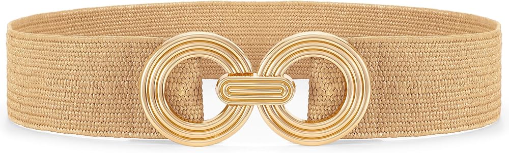 Womens Wide Elastic Belts for Dress Fashion Stretchy Waist Belts for Ladies with Gold Buckle