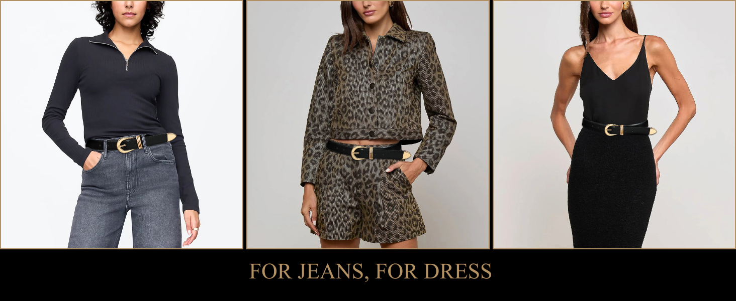 【EASY STYLING – Works for Jeans, Dresses & Pants】Designed for womens belts for jeans that transition to womens belts for dress, giving shape to tees, sweaters, trousers, or workwear. The refined black strap pairs with casual or dress belt women outfits without overpowering your look