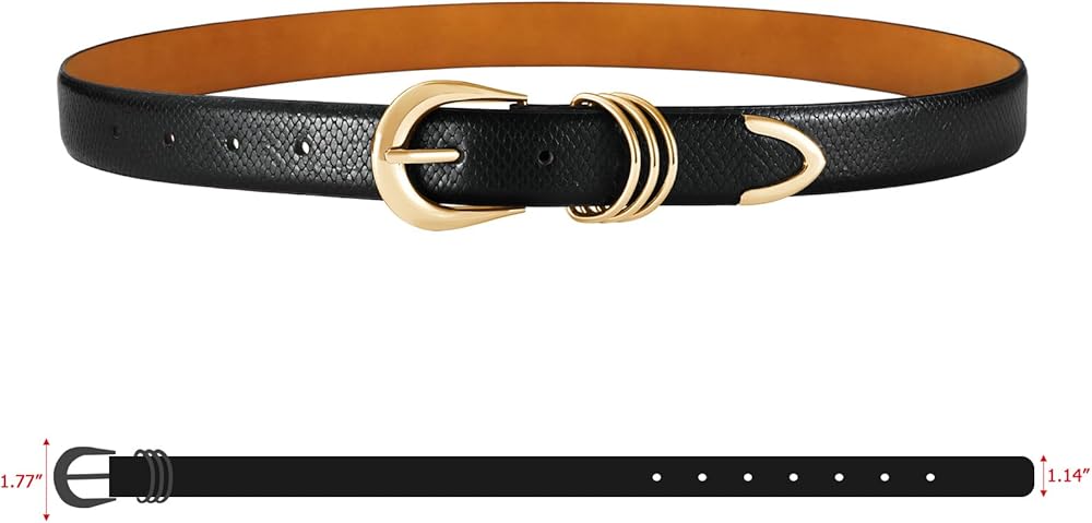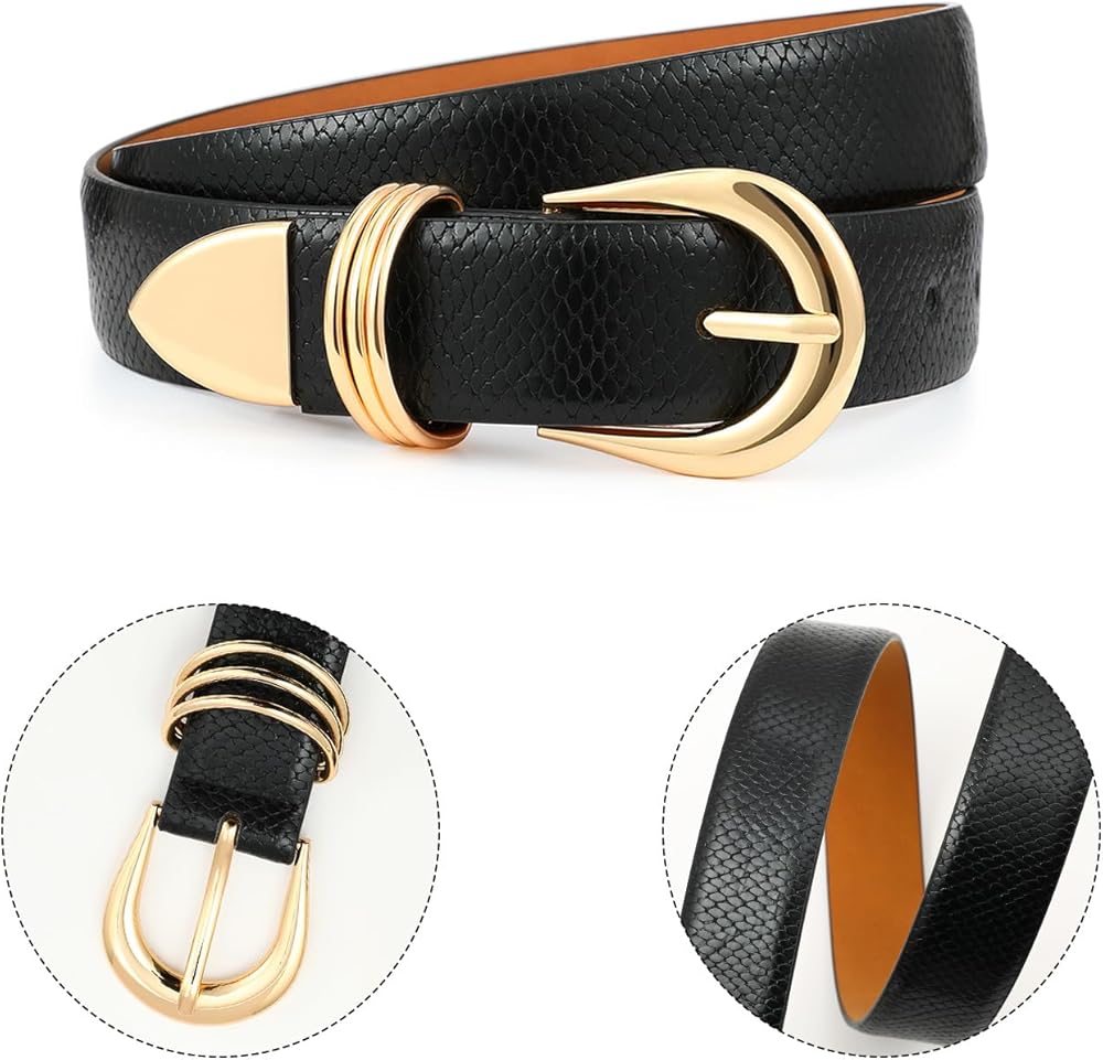 【PREMIUM MATERIAL – Durable Leather Belts for Women】Seeking lasting quality, this womens belt uses smooth faux leather with firm edges for daily jeans, dress, or pants. Black tones match outfits easily while keeping shape through long wear