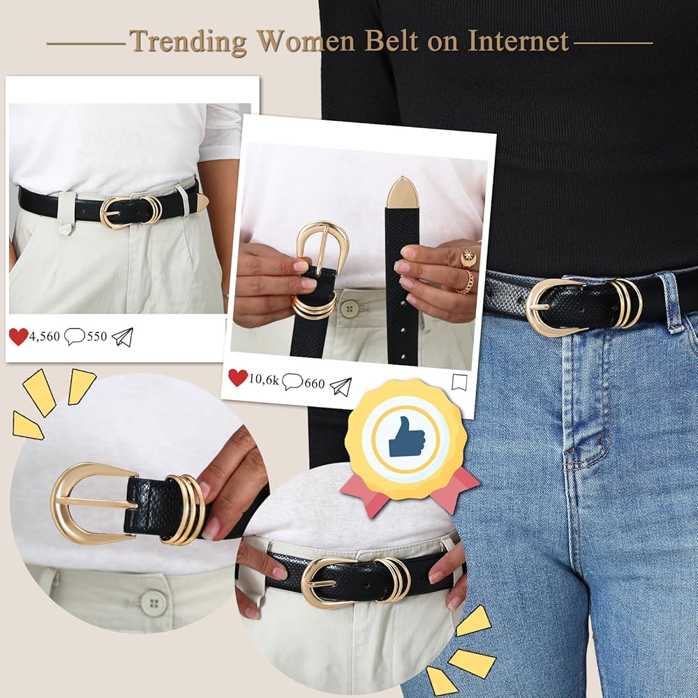 IDUNNVERVE women leather belts built for daily outfits that need secure fit and clean waist shaping. This adjustable black belts for women uses smooth faux leather and stable edges for long wear. The gold buckle design supports flexible sizing for jeans pants dresses trousers and casual or office outfits. As womens belts for jeans and womens belts for dress needs, the slim black strap keeps tops neat and works as women belt choice for tees sweaters workwear travel or commutes. The refined black womens belt pairs with denim high waisted pants or dress pants while maintaining shape without bulk. Designed as a practical womens waist belt for clean silhouettes, the soft strap stays secure and suits daily wardrobe mixes. Ideal for styling needs that require a classic black women belt for business casual outfits. Works as womens fashion belt option for simple looks, daily wear, office outfits, or minimal dressy styles. A reliable piece for women seeking versatile leather look belts for everyday use wardrobe building or gifting occasions