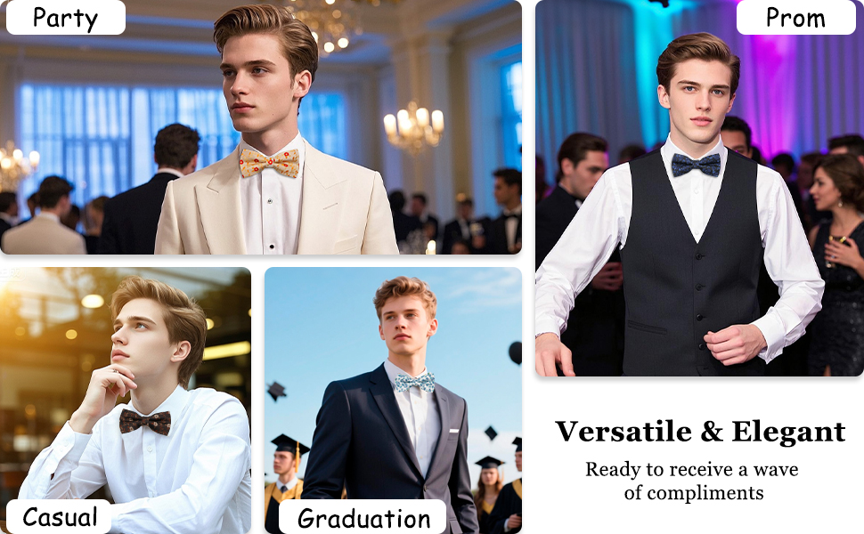 Practical Bowtie for Men: The tuxedo bow tie for men is made of polyester, which is not easily deformed and fade; Mens bow ties pretied has a smooth touch and is not prone to pilling during daily wear, making it an ideal item for men