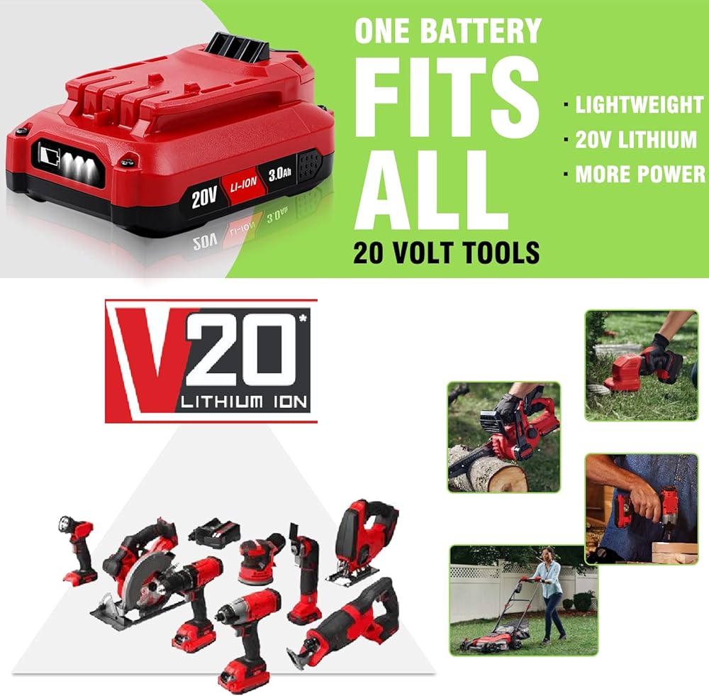 • ✅【Great Replacement for Craftsman V20】100% Brand New 20V | 3.0Ah | lithium-ion battery. The 20V replacement battery for Craftsman has high-capacity rechargeable battery for extended run time. Repeated tested to match over 50 Craftsman 20V power tools.