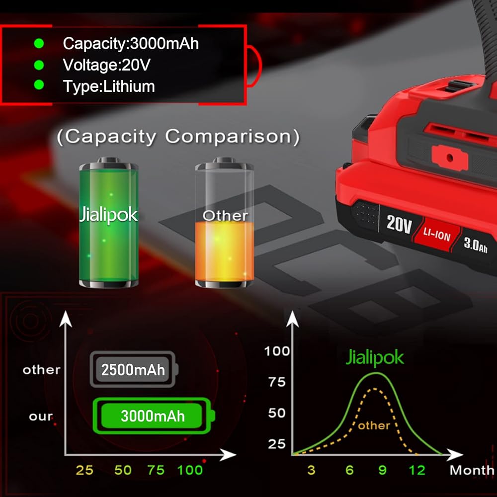• ✅【Higher Capacity】 The replacement Craftsman 20V 3.0 Ah higher capacity battery for CraftsmanV20 tools, made with Top-A grade battery cell and repeated tested to match original for Craftsman power tools, the replacement battery has no memory effect, is more powerful, longer-lasting.