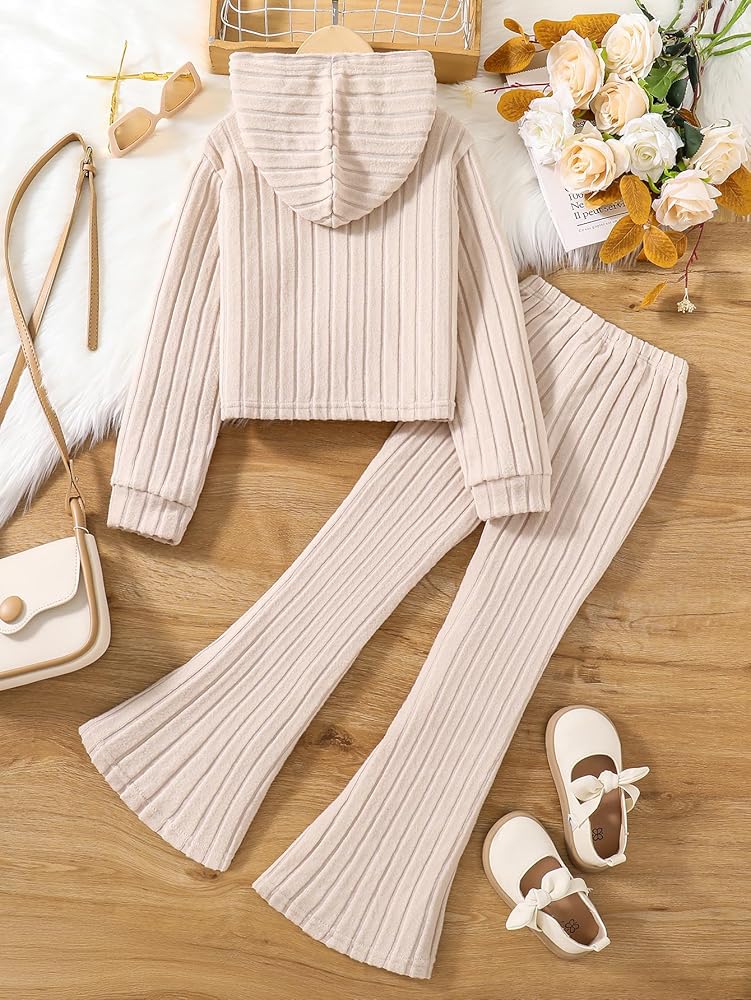 Style: Features apricot color ribbed pullover top and matching pants. This girls pull-on fall outfit blends fashion and comfort for everyday wear