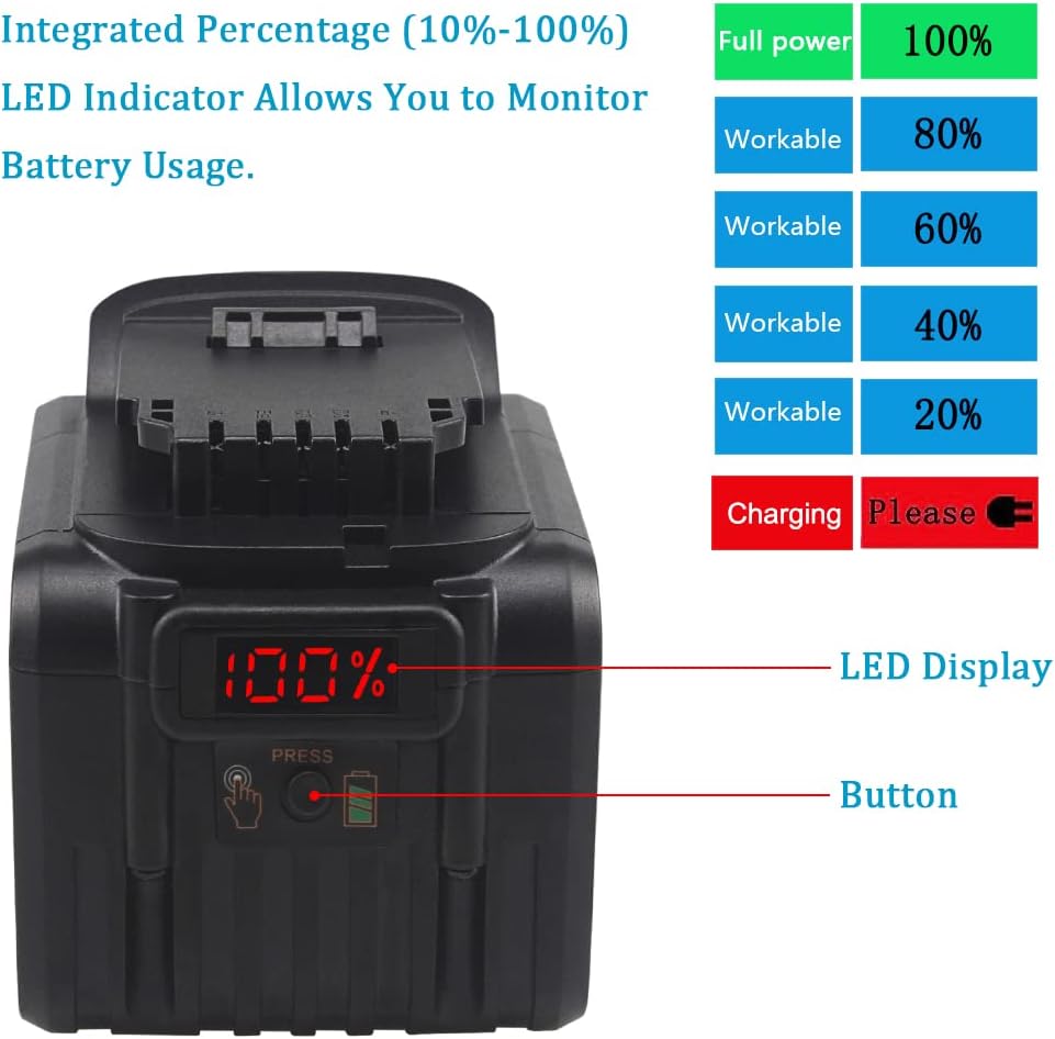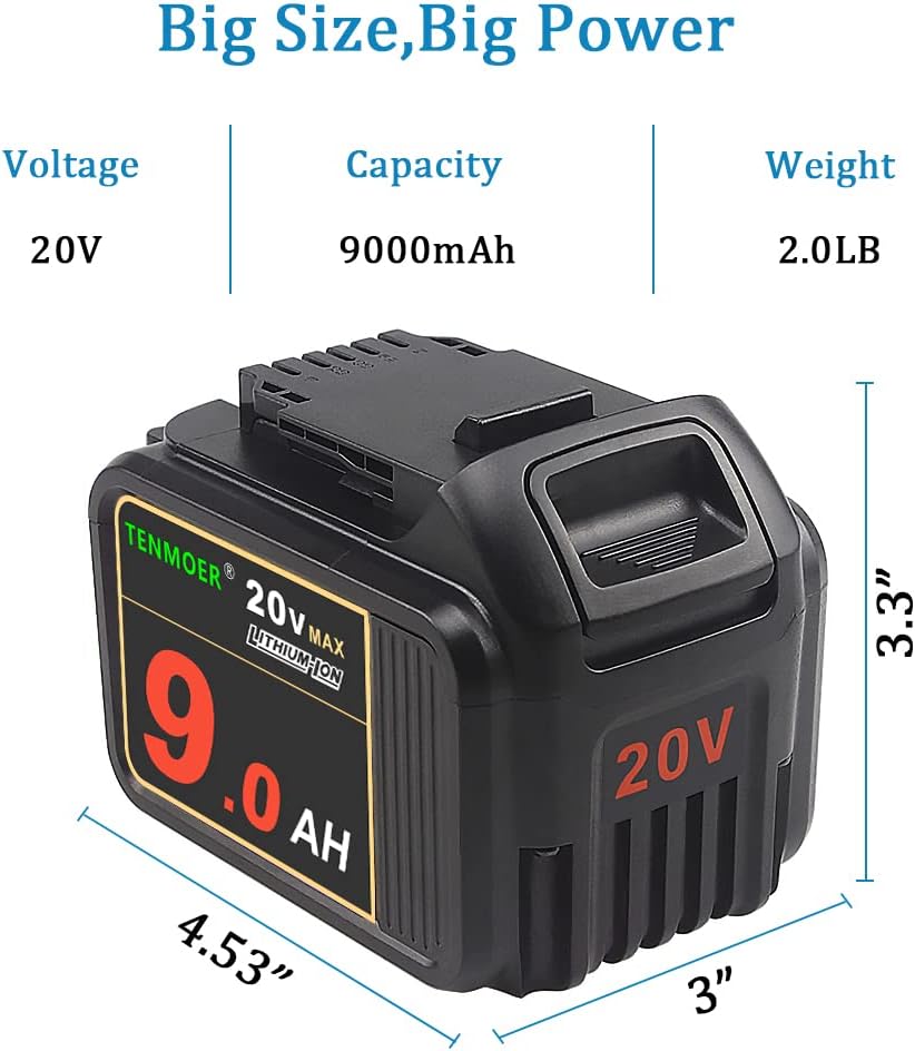 [Specification] Voltage: 20 Volt | Capacity: 9Ah/9000mAh | Lithium-Ion Battery | High Quality Battery Cells,180W/H.