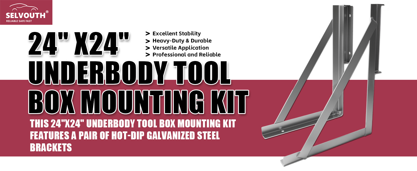 【Complete Kit】 – The 24"x24" underbody tool box mounting kit includes 1 pair of hot-dip galvanized steel brackets, offering a complete and reliable solution for tool box installation.