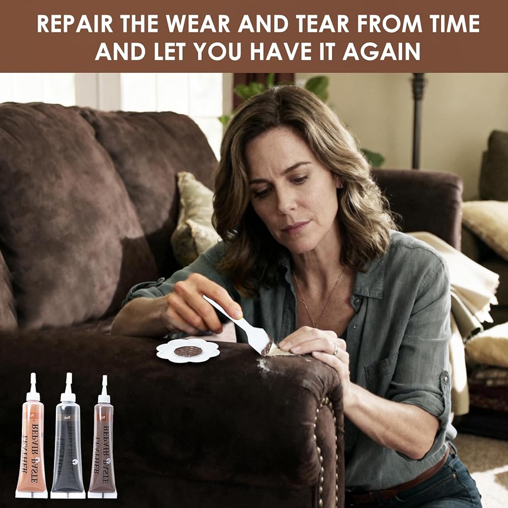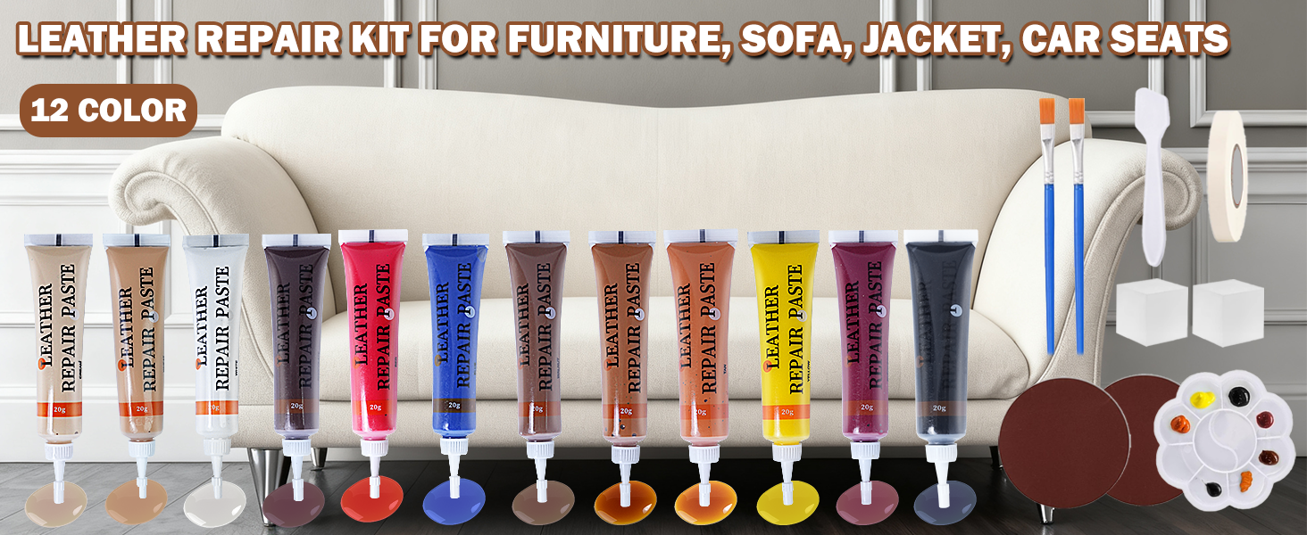 Leather Repair Kit:Our leather couch repair kit delivers professional - quality results on both new and old faux leather, artificial leather, synthetic leather, bicast leather, PU leather and premium upholstery. Ideal for fixing scratches, cuts, punctures, tears, cracks, scuffs and pet damage from cats or dogs