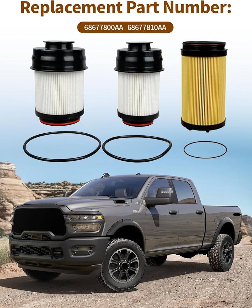 Applicable Models:The Filter Set Fit for 2025-2026 Ram 2500, 3500, 4500, 5500 6.7L cummins Turbo Diesel Engines,Replaces 68677800AA 68677810AA
