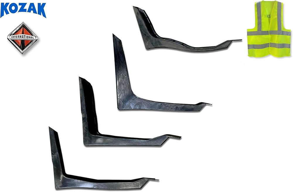 Upgrade your International LT LT625's driver left side with our robust KOZAK Cabin Fairing Brackets/Mounts Set. This comprehensive set includes L1, L2, L3, and L4 brackets, designed to fully support and protect your cabin fairing. Crafted from durable alloy steel and stainless steel, these brackets are built to withstand rigorous road use and harsh weather conditions. They feature a functional, black finish and are easy to install, ensuring a seamless fit with your vehicle. The set also includes a KOZAK logo and reflective vest for added safety and professionalism.