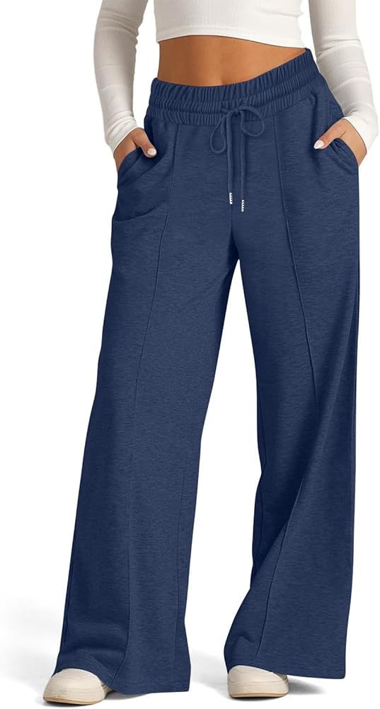 Wide Leg Sweatpants Women Fashion Fleece Baggy Joggers Comfy Lounge Pants Fall Casual Sweat Pants Trendy Travel Pant