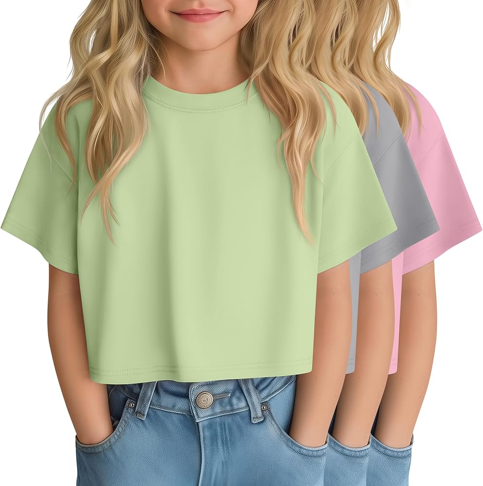 Crafted from a soft polyester, rayon, and spandex blend, these girls' tops are lightweight, breathable, and gently stretchy, making them perfect for school days, outdoor play, or casual weekends. The solid color design makes mixing and matching simple, whether paired with jeans, leggings, shorts or skirts.