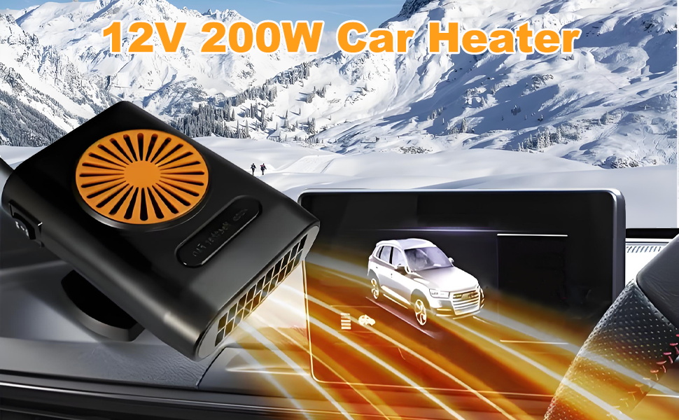 【Rapid 200W Heating for Instant Warmth】Our car heater features oxidation-resistant alloy heating elements. With a powerful 200W output, it rapidly heats up to efficiently clear frost and fog from your windshield,ensuring a clear view. Enjoy safe and comfortable journeys this winter