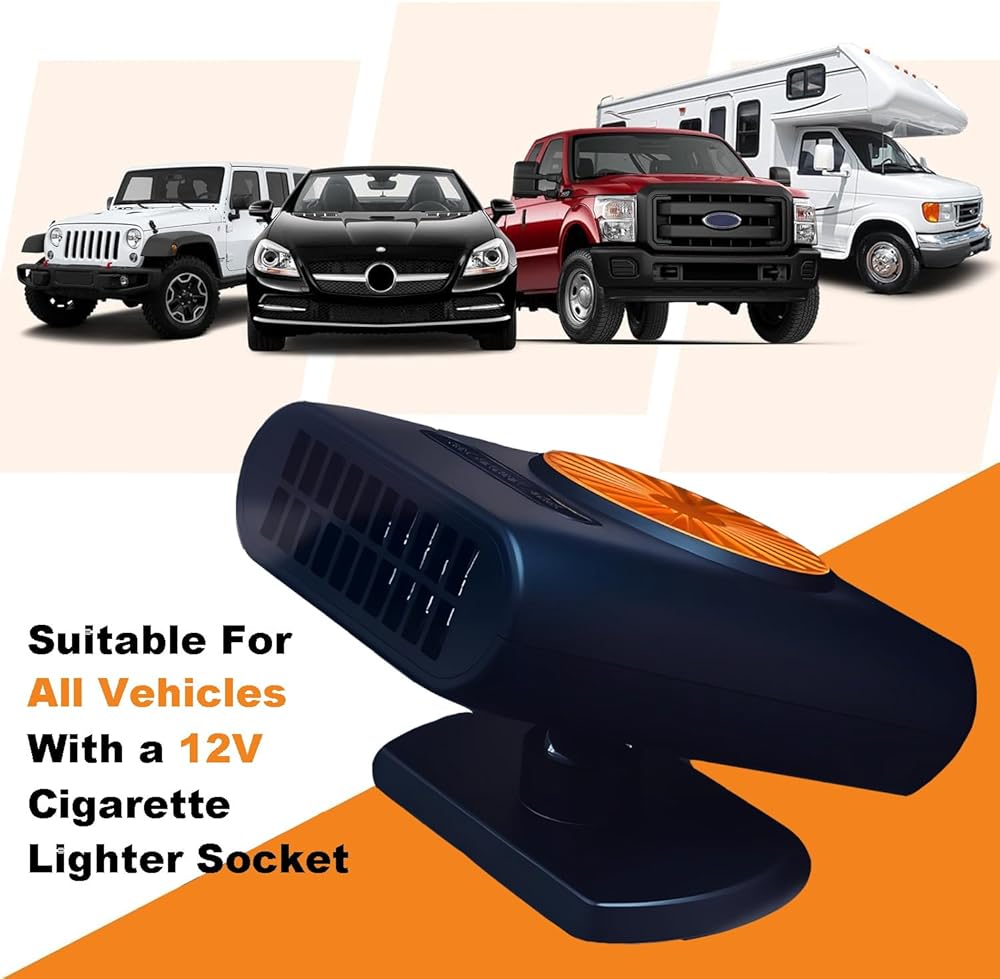 【360° Rotating Base for Full-Direction Warmth】Direct heat exactly where you need it. The versatile rotating base allows for a full range of motion to efficiently defrost your windshield or keep all passengers comfortably warm