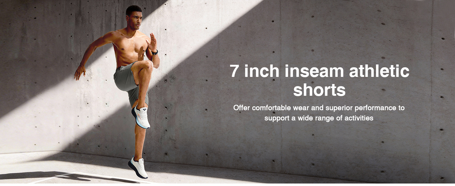 Fit design: 7 inch inseam athletic shorts are comfortable and support a variety of activities.The loose fit features a wide elastic waistband with drawstring, ensures a perfect fit for various waist sizes and body types, providing comfortable wearing experience
