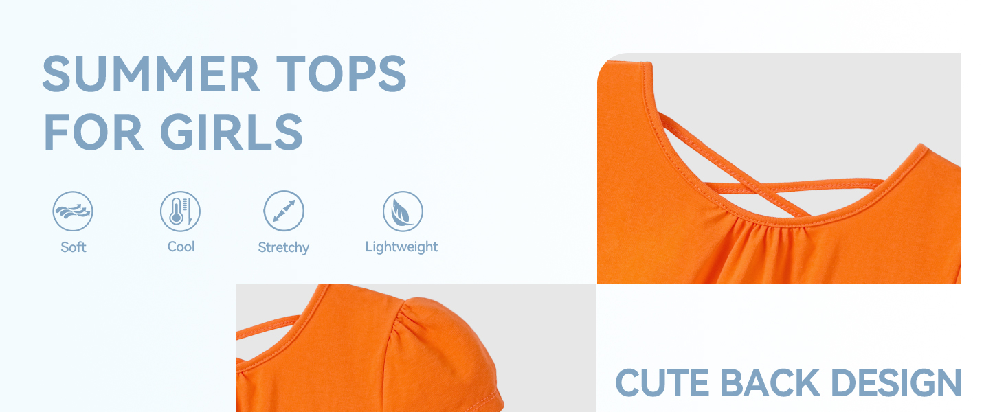 Cute Design Details: Girls shirts features a round neck, puff sleeves, gathered chest, and stylish crisscross back for an adorable look