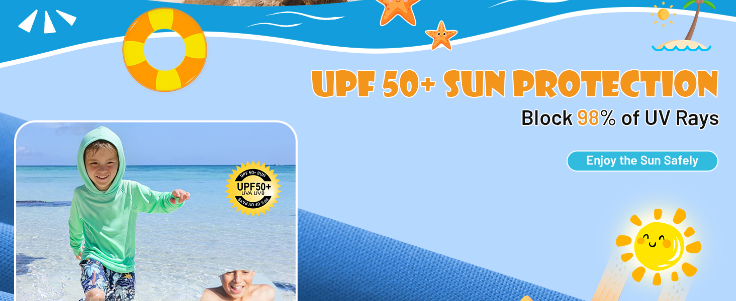 Moisture-Wicking Fabric: The breathable, fast-drying material of this boys swim shirt pulls sweat away from the skin, keeping kids cool and comfortable even in hot summer weather