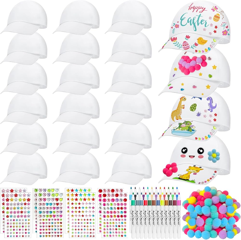 Encourages Creativity: With these blank white baseball caps, youth can freely explore their creativity using multicolor art markers to design and paint various patterns. Transforming the plain caps into personalized wearable art pieces, young creators can also customize their designs with assorted stickers and . This artistic activity supports early childhood development by enhancing hand eye coordination, color theory comprehension through hands on creative expression