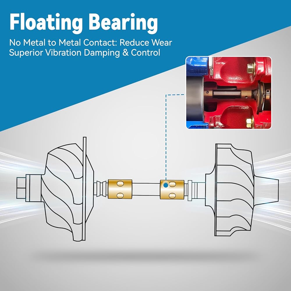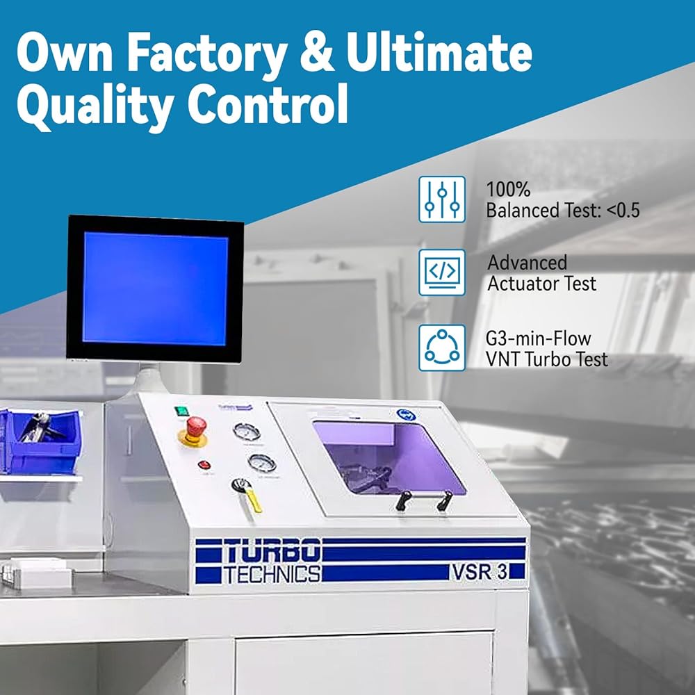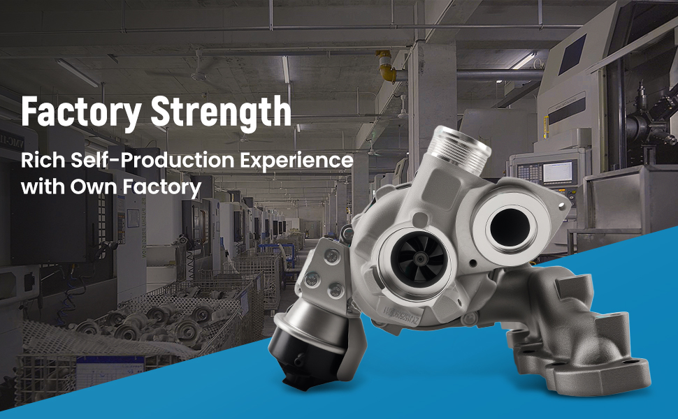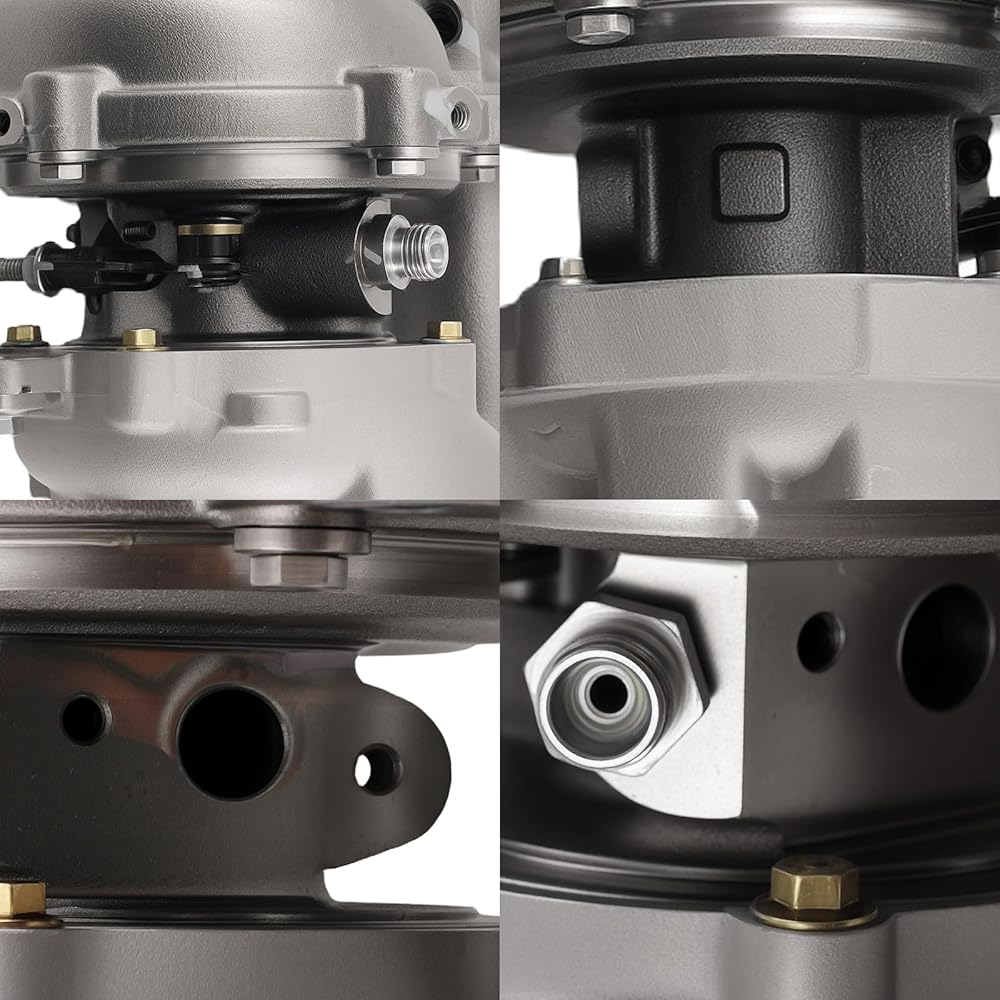 【Turbine Housing & Wheel】The turbine housing made of ductile iron is resistant to high temperatures of 1292°F. And the alloy turbine wheel has high oxidation stability and can operate well at 1652°F