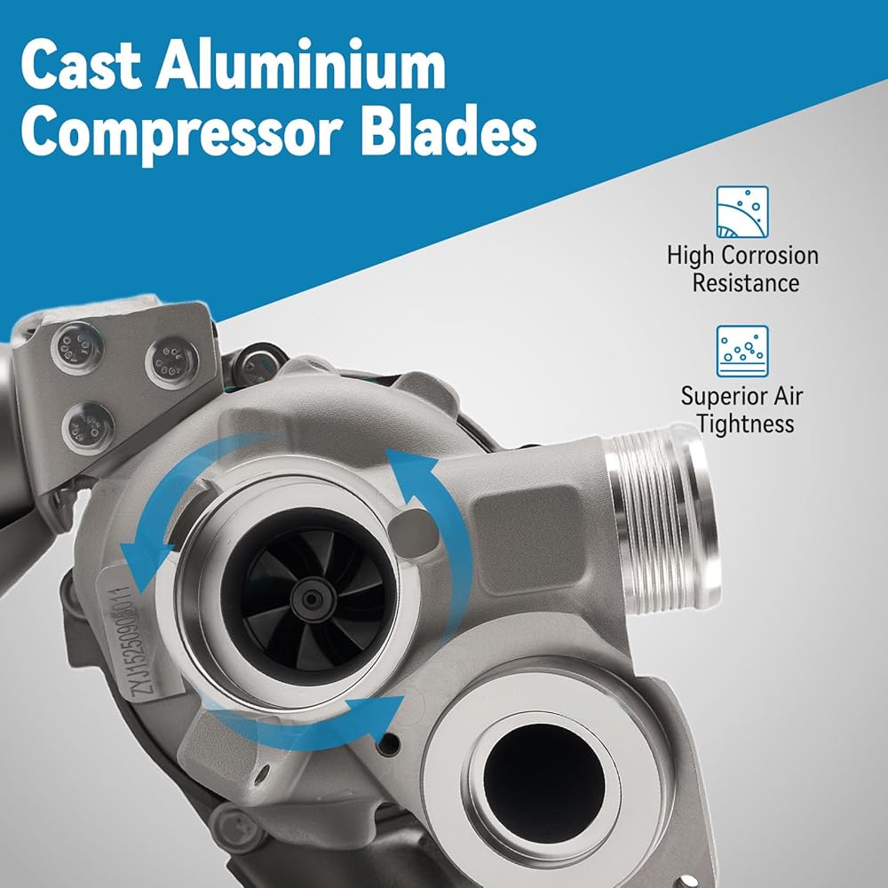 【Aluminum Compressor Wheel】Crafted from premium forged aluminum alloy, featuring an aerodynamic design that improves airflow and compression efficiency. It ensures durability, stability, and enhanced boost response under various driving conditions