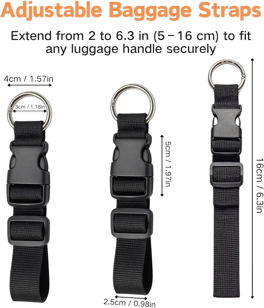 Adjustable and Universal Fit: Easily customize the strap length to fit various items from light tote bags to heavy winter coats, compatible with all wheeled suitcases, backpacks, and even grocery carts or strollers