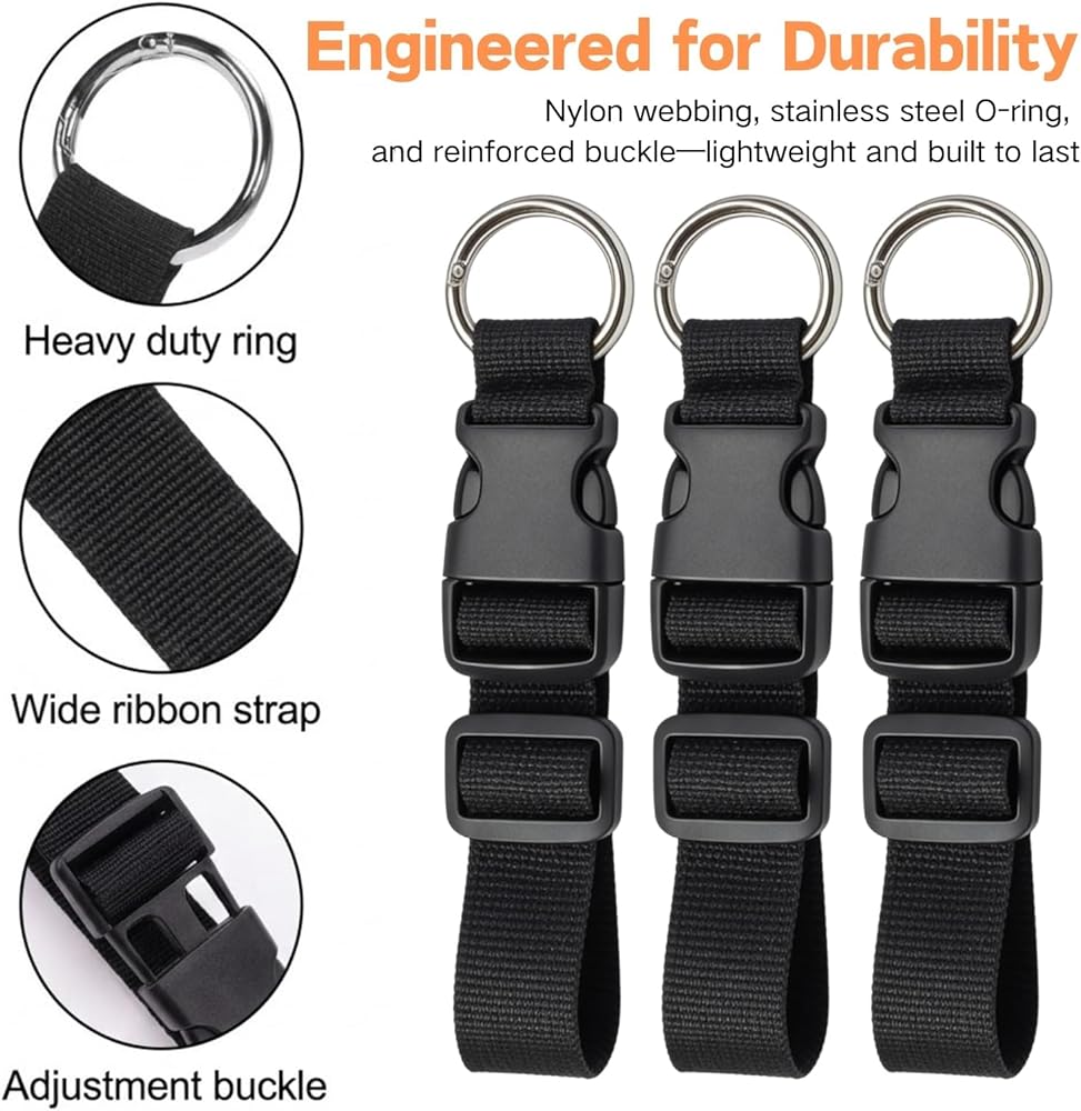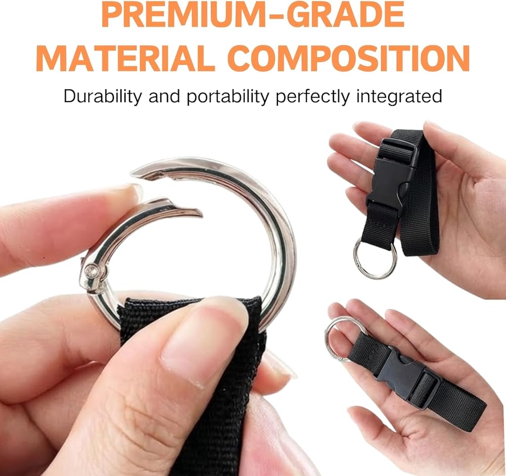 Secure Anti-Slip Hold: Engineered with high-density nylon and a heavy-duty spring-loaded carabiner to ensure your personal items stay locked onto your suitcase without sliding or dropping even on bumpy floors