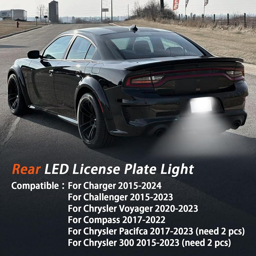 【Fitment】This license plate light compatible with Charger 2015-2023, for Challenger 2015-2023, for Chrysler 300 (need 2 pieces) 2015-2023, for Chrysler Pacifica (need 2 pieces) 2017-2023, for Compass 2017-2023