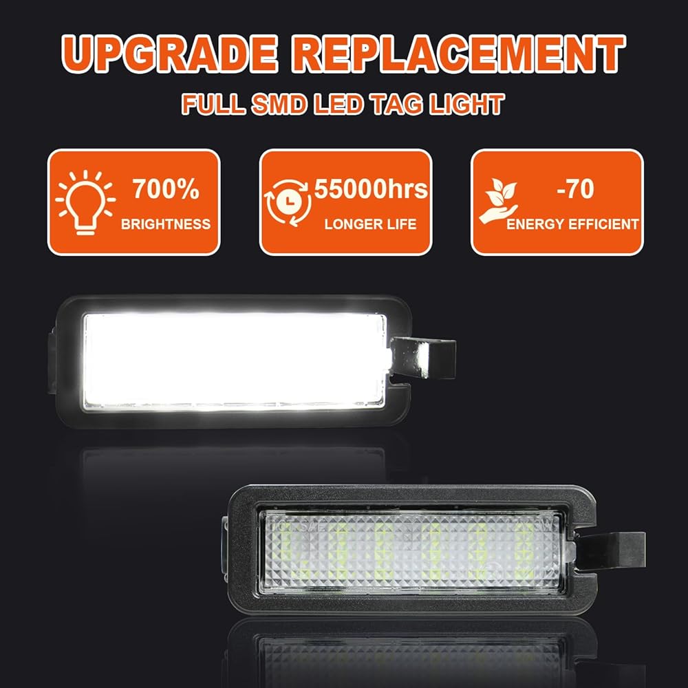 【Easy Installation】These license plate lights are easy to replace, no need to drill holes or rewire, plug and play, 1-2 minutes to complete the upgrade, bring your car a new visual experience and safety