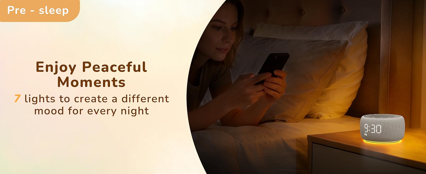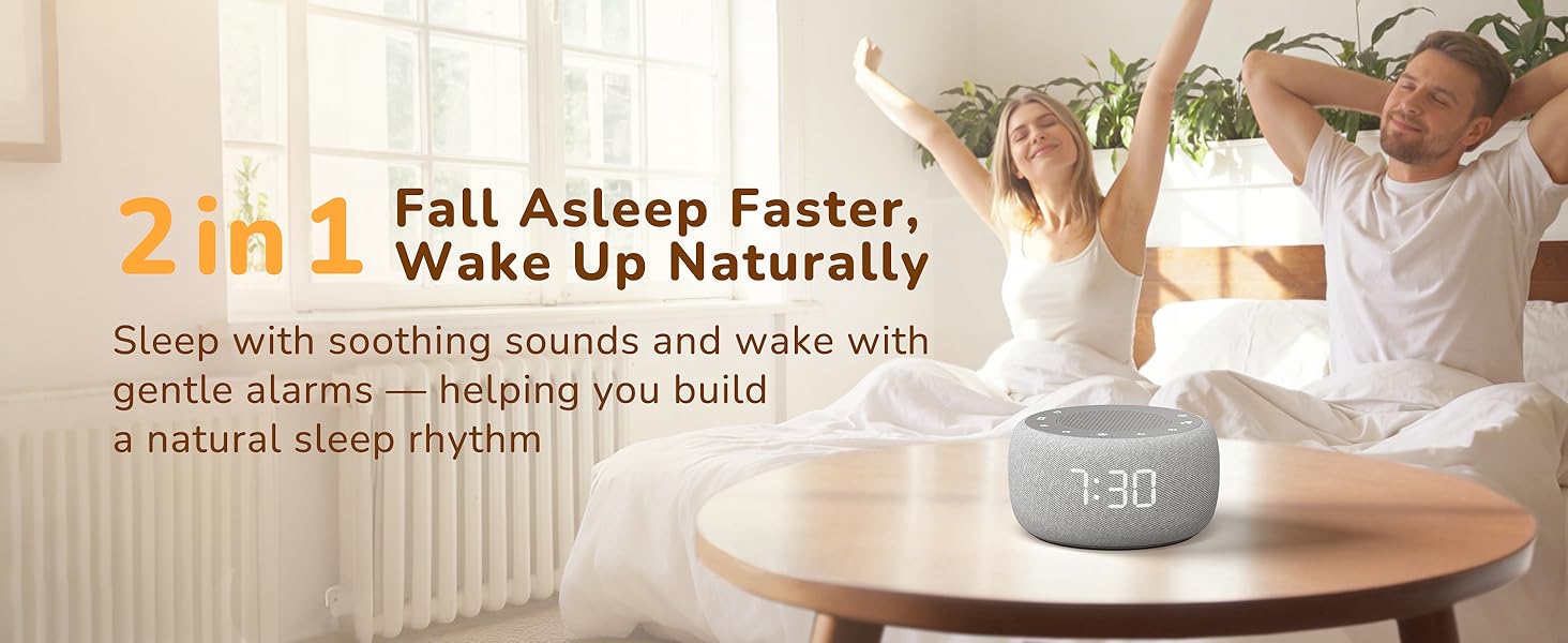 Sleep Better, Wake Gently: Fall asleep more easily with calming white noise and nature sounds, then wake softly to gradual alarm tones designed to reduce morning irritation and create a smoother, more comfortable start to your day