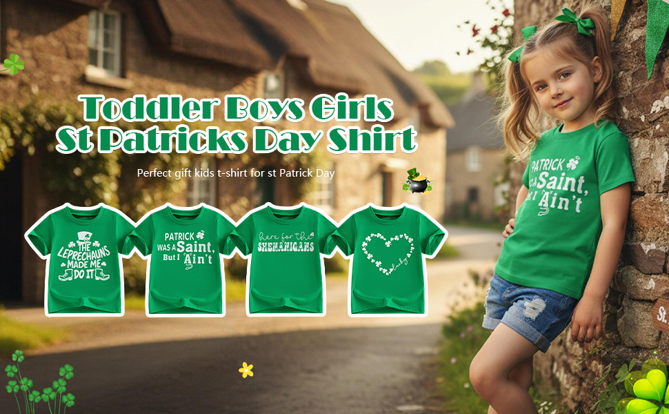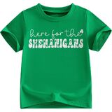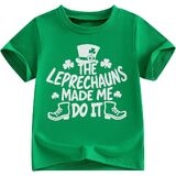 Design:St. Patrick's Day T-shirt for kids,funny letters ''the leprechauns made me do it'' ''Patrick was a Saint,but i Ain't'' ''here for the shenanigans'' shamrock print; making your little one look extremely adorable and attractive during the Green Days