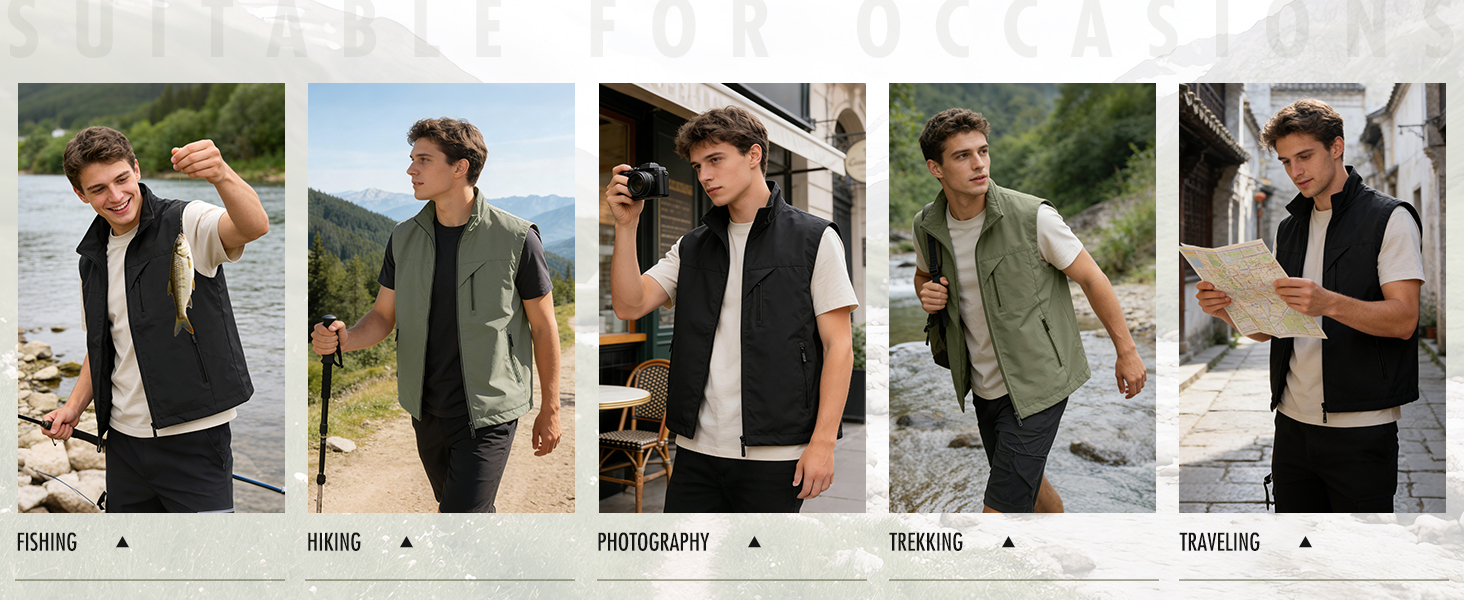 • متينة: سترة رجالية بجيوب متعددة، سترة رياضية صيفية بدون أكمام، تضمن بقاء مرتديها منتعشًا ومريحًا طوال اليوم!
