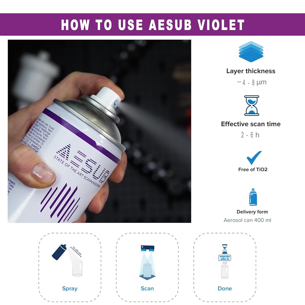 3D Scanning Spray for 3D Scanner - No Cleaning Needed, Ideal for Transparent Reflective Textured Surfaces, Longer-Lasting than Blue Spray, Improves Scan Accuracy Efficiency, 400ml(13.53 fl oz), Violet