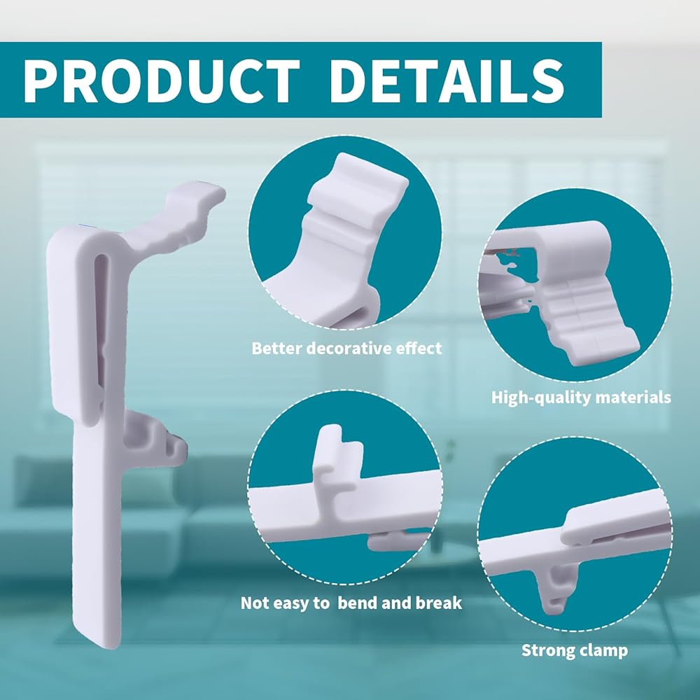 Durable Material: Made from high-quality plastic, these blind valance clips replacement offer long-lasting durability and are resistant to wear and tear, ensuring a secure fit and functionality.
