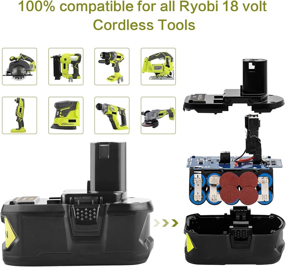 [Applicable Models]Compatible with Ryobi 18V p102, p103, p104, p105, p107, p108, p109 BPL-1815, BPL-1820G, BPL18151, BPL1820 and fit all 18v one+ system cordless tools.