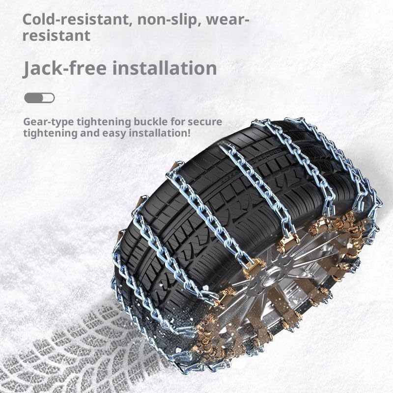 • 【Auto-Tightening Design】These car chains automatically tighten during driving, requiring no rubber tighteners or readjustment. Enjoy smoother, safer winter driving without the need to stop and retighten.