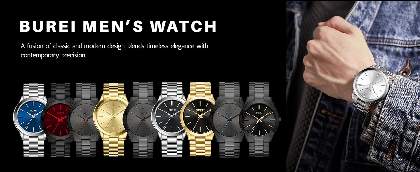 Simple Men's Watch: BUREI men's business watch is simple and fashionable, and it can stand the test of time. 44mm stainless steel round dial design, three-hand watch, simple and easy to read. This watch has a stylish design and fits any outfit, suitable for various occasions such as parties, daily life, outdoor activities, etc.