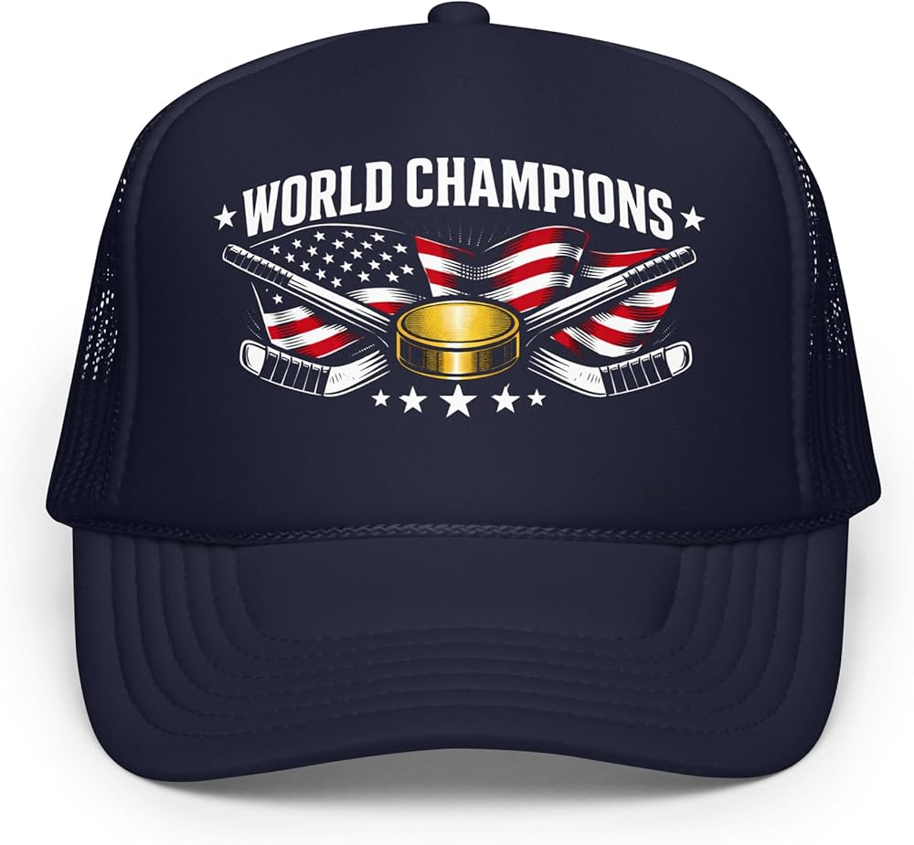 USA World Champions Gold Hockey Champs American Flag - Foam Trucker hat